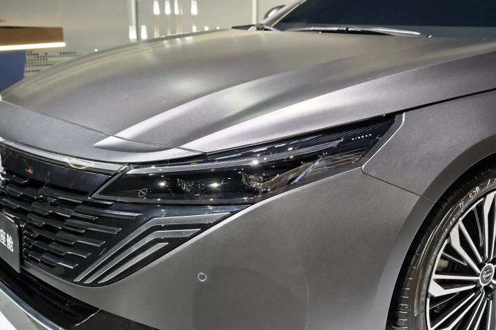 再来看车身侧面部分,车身侧面采用更具张力的溜背设计,C 柱溜背角度较现款增加了一些,车顶线条从 B 柱开始急速下坠,营造出四门轿跑的流畅体态。首次引入的隐藏式门把手,配合全新 19 英寸低风阻轮毂(可选双色切削工艺),将整车风阻系数降低。车身新增 “星曜紫”“量子灰” 两种纳米级金属漆,光线照射下呈现渐变效果,搭配双色悬浮车顶,满足年轻用户的个性化需求。车身尺寸方面,新车长宽高分别为4920/1850/1447毫米,轴距为2825毫米,相比现款车型车身长度增加14毫米,其他尺寸保持不变。
